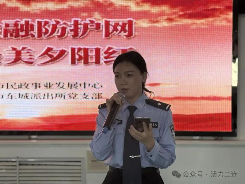 活动现场,二连浩特市公安局东城派出所民警,用通俗易懂的语言拆解常见诈骗套路。针对“保健品诈骗”“虚假投资”“冒充子女借钱”等老年人高频遭遇的骗局,结合真实案例,手把手教老年人识别诈骗话术,提醒大家“不贪小便宜、不轻易转账、遇事多商量”,筑牢养老钱的“安全防线”。