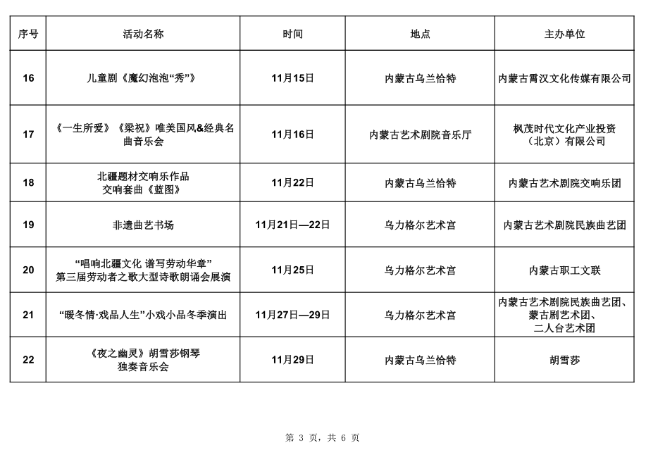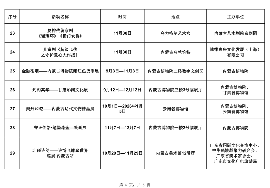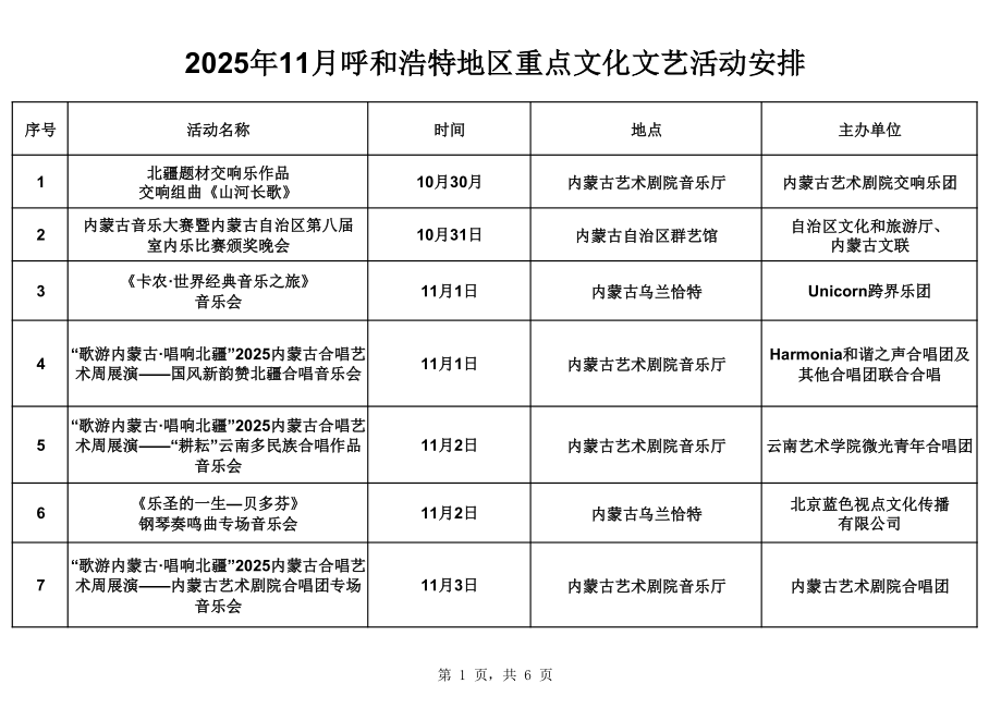 2025年11月呼和浩特地区重点文化文艺活动安排