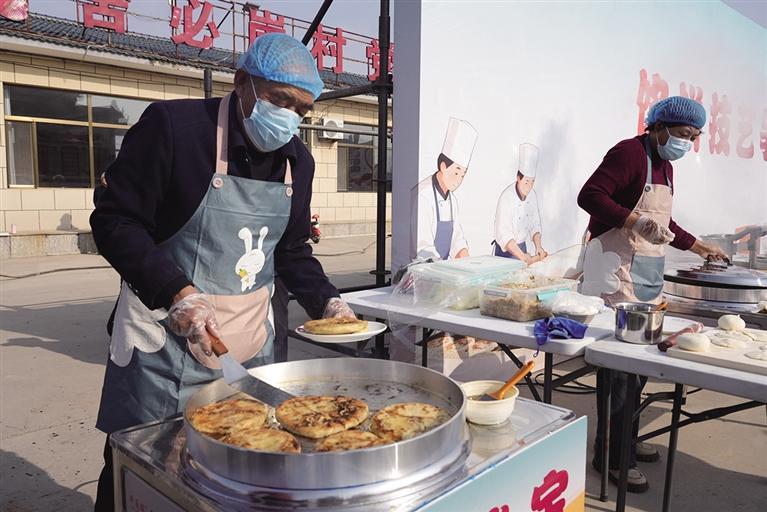 最引人注目的当属馅饼技艺争夺赛。操作台旁,十余位选手各显神通,和面、擀皮、调馅,动作娴熟。有的选手手法利落,擀出的饼皮薄如蝉翼;有的则在馅料工艺上独具巧思。比赛尾声,村民们会为心仪的选手投票。“今天吃了几家,每家味道都不含糊。”舍必崖乡新地村村民李福继慕名前来,“既能吃到热乎的馅饼,又能跟老朋友们聊聊天,心里舒服得很。”