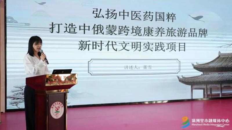 经过激烈角逐,“弘扬中医药国粹,打造中俄蒙跨境康养旅游品牌”新时代文明实践志愿服务项目获得了此次大赛的一等奖。讲述人董雪说:“很高兴能参加比赛,也很荣幸获得了这样的名次。希望通过这次比赛,把我们的中医药文化传承出去,让更多的人了解、关注我们的项目,助力满洲里全民健康再上新台阶。”