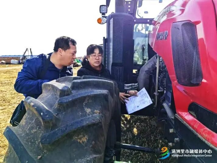 为切实筑牢农机安全防线,强化政策宣传实效,满洲里市农牧水利局服务农户开展基层业务办理工作,推进农机具核验提升和安全使用保养意识。满洲里市农牧水利局组织专业人员到农机户家中,开展实地机具核验工作。工作人员逐一核对农机合格证、机具铭牌、出厂编号及底牌号等关键参数,确保拟转入农机信息真实准确,并现场指导农机户尽快完善拖拉机转入手续,依法申领行驶证,从源头上消除农机“无牌行驶”安全隐患。
