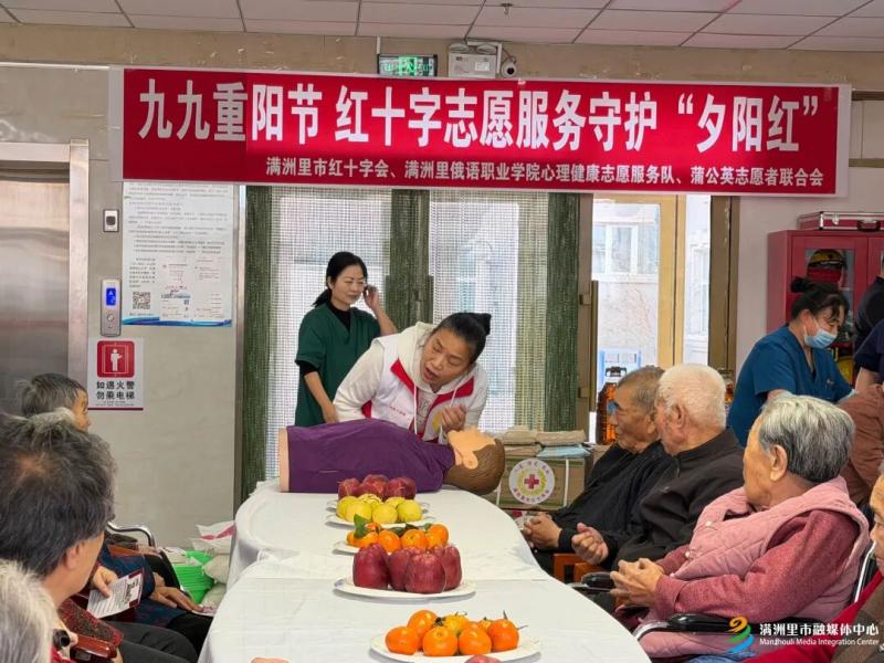 金秋送爽,又逢重阳。为弘扬尊老敬老的传统美德,关爱养老院老人的生活与精神需求,10月29日,满洲里市红十字会携手满洲里俄语职业学院心理健康志愿服务队、满洲里市蒲公英志愿者联合会,在满洲里市华颐老年健康养护中心开展“九九重阳节 红十字志愿服务守护‘夕阳红’”联合慰问活动,为院内60周岁及以上老人送上节日的温暖与关怀。