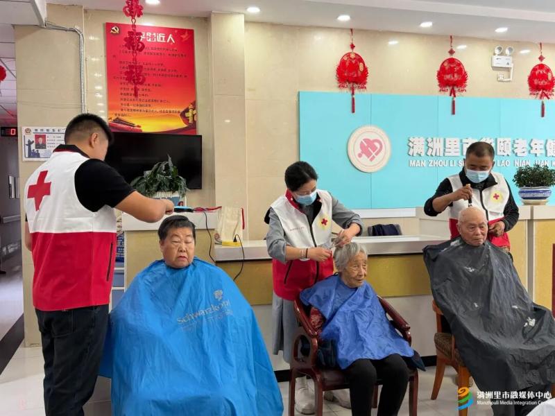 活动中,满洲里市红十字会负责人向老人们表达了节日祝福。随后,红十字应急救护师资为老人们开展应急救护知识普及,结合老年常见突发情况讲解实用急救技巧,帮助老人提升自我保护能力;蒲公英志愿者联合会的志愿者们还为老人们进行了理发服务。志愿者们带着专业工具,耐心询问每位老人的理发需求,动作轻柔细致,剪发后及时让老人通过镜子确认效果,贴心服务赢得老人们的一致称赞。