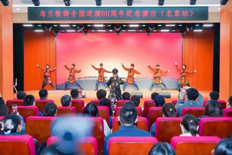 作为乌兰牧骑全国巡演的重要一站,此次演出不仅是对60年巡演历程的致敬,更是北疆文化与京城文化深度交融的生动实践。北京站演出在情景歌舞《我们的红色文艺轻骑兵》中拉开帷幕,全体演员以饱满的热情再现乌兰牧骑深入基层、服务群众的初心,瞬间点燃现场氛围。马头琴齐奏《万马奔腾》,将大漠的雄浑与苍劲演绎得淋漓尽致;四重唱《苍天般的阿拉善》传递着草原儿女对家乡的深情眷恋。演出在全体演员与现场观众的大合唱《歌唱祖国》中完美落幕。