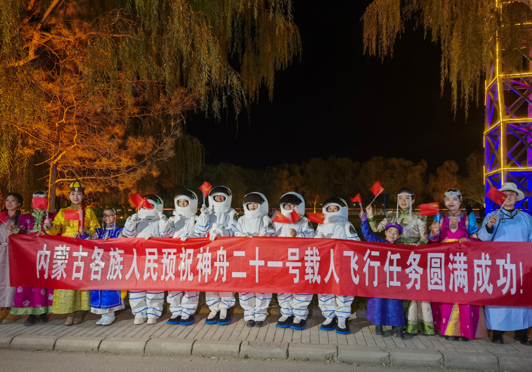 内蒙古各族人民预祝神舟二十一号载人飞行任务圆满成功。