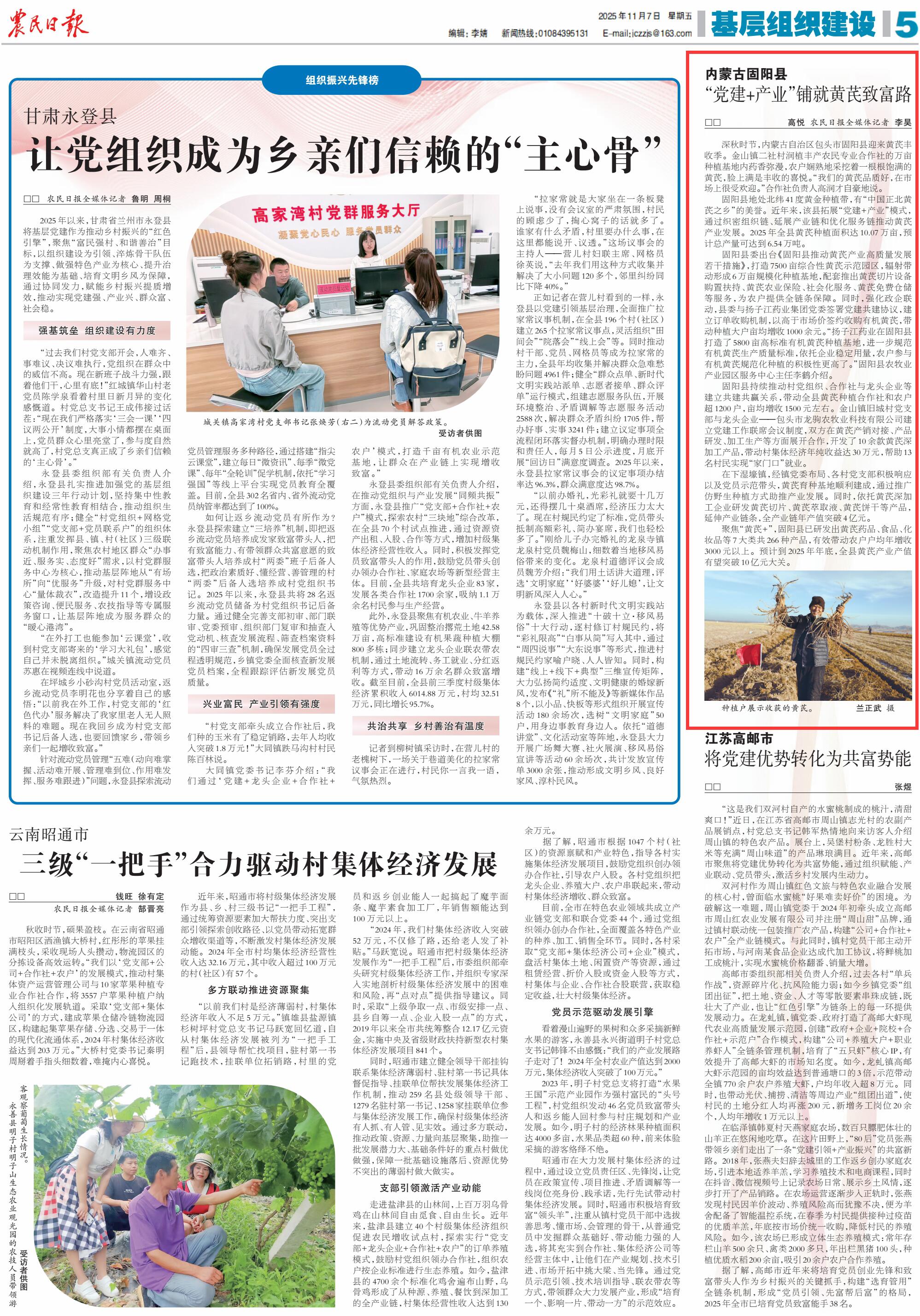 2025年11月7日《农民日报》第5版刊发了《内蒙古固阳县“党建+产业”铺就黄芪致富路》的文章,报道了近年来,内蒙古自治区包头市固阳县拓展“党建+产业”模式,通过织密组织链、延展产业链和优化服务链推动黄芪产业发展。有效带动农户户均年增收3000元以上。预计到2025年年底,全县黄芪产业产值有望突破10亿元大关。