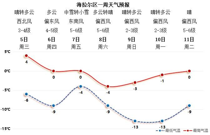 大风和降温也将同步来袭,西部偏西地区偏南风转西北风6~7级,阵风8级及以上;西部偏东和东南部偏南风转西北风5~6级。同时,各地气温将下降4~6℃,以海拉尔区为例,7日气温预计为-5℃~0℃,9日最低气温将跌至-13℃,寒意明显加剧。