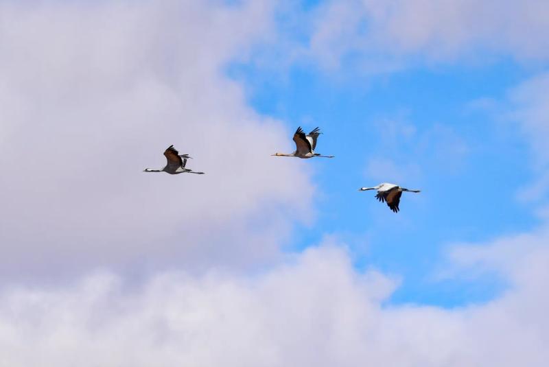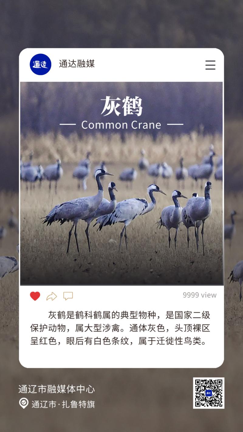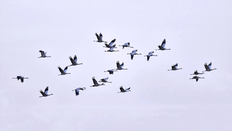 灰鹤以植物根茎、种子及昆虫为生,繁殖于北方湿地、草原,冬季南迁越冬,对生态环境敏感,是区域生态质量的天然指示器。