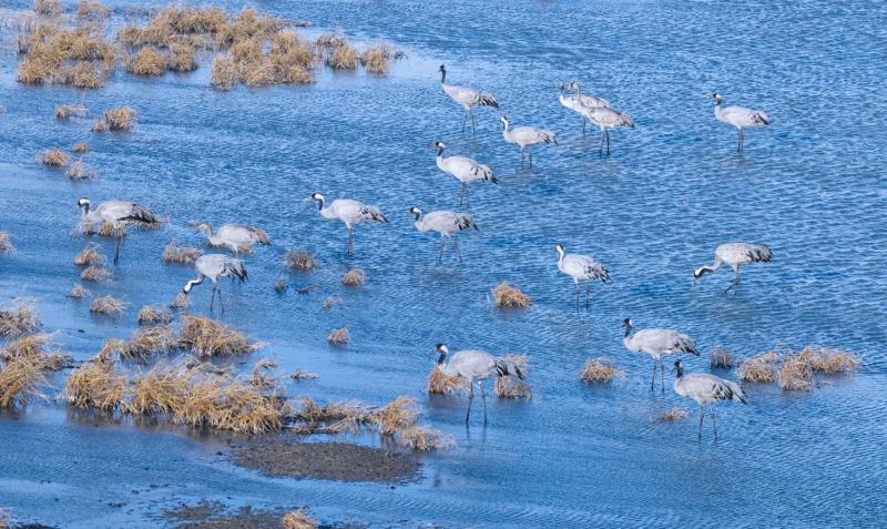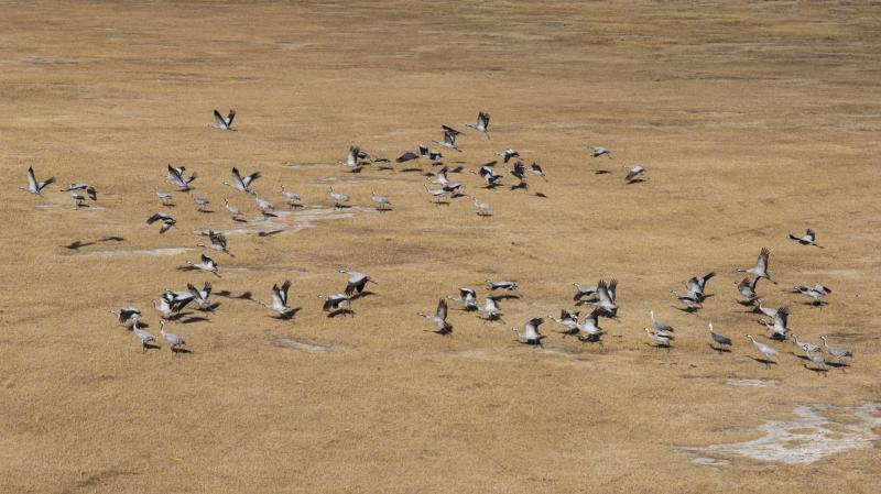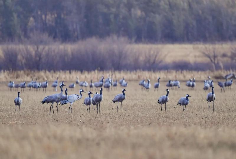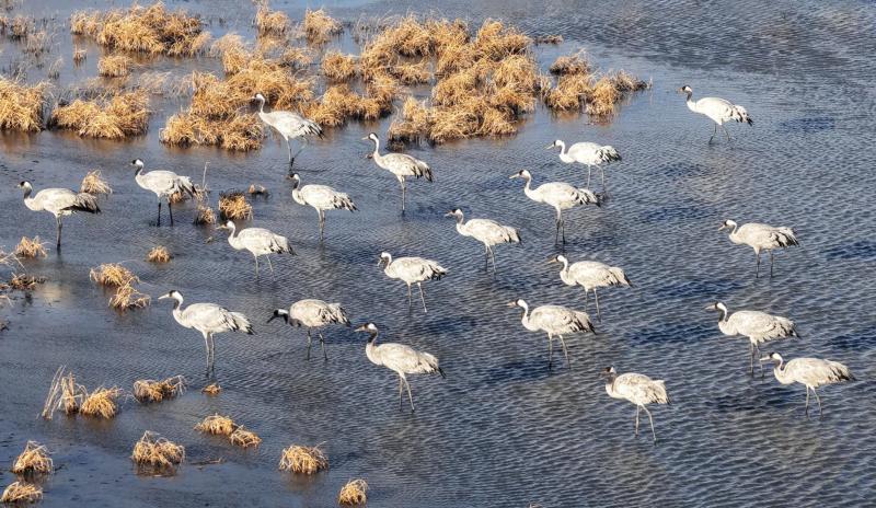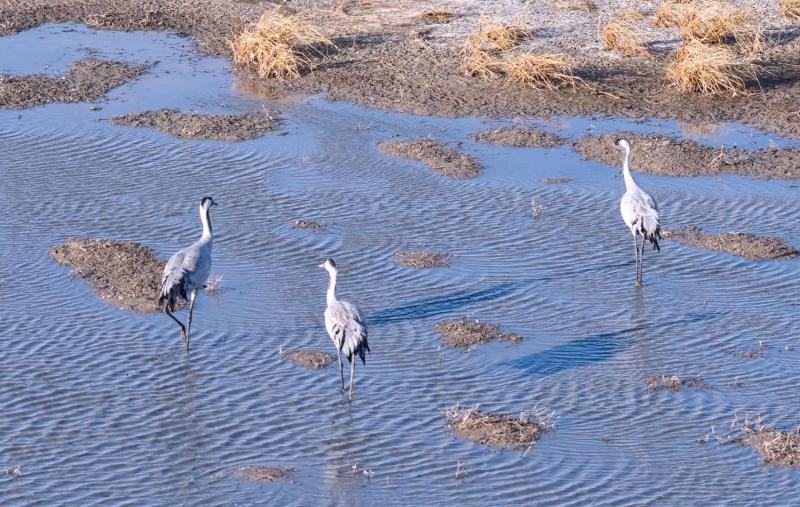 近日,一群灰鹤迁徙至扎鲁特旗境内一处湿地,成群的灰鹤齐聚湿地、田间,或在水面戏水漾起粼粼波光,或舒展双翼翩翩起舞,或低头寻觅美食,时而嬉戏追逐,时而驻足休憩,一派灵动生机尽显生态之美。