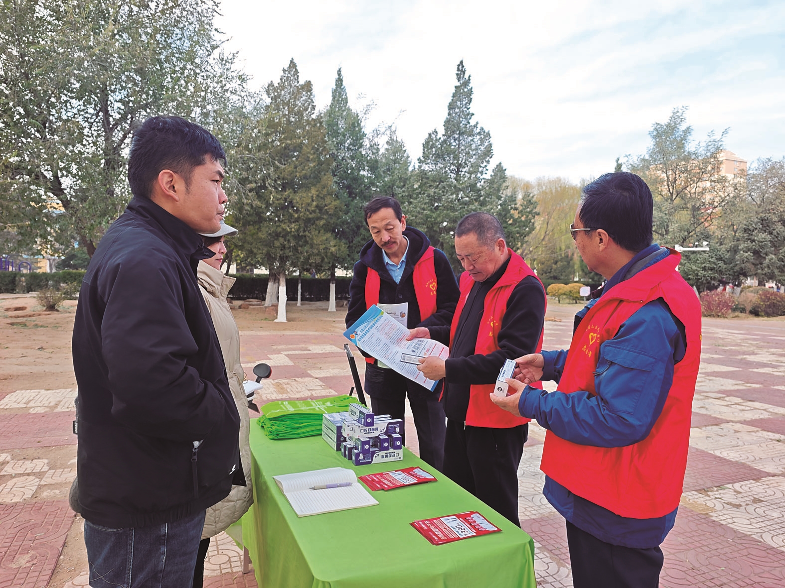 活动现场,社区工作人员在中心公园人流密集区域设置便民服务点,向居民发放医保政策解读、燃气安全使用指南等宣传资料;民族中学党员志愿者耐心解答老年人关心的异地就医备案、门诊报销比例等问题。宣传结束后,大家分工协作、密切配合,手持夹子、垃圾袋,对草坪、绿化带、健身区等重点区域进行全面清理,赢得在场居民一致好评。 (高洋)