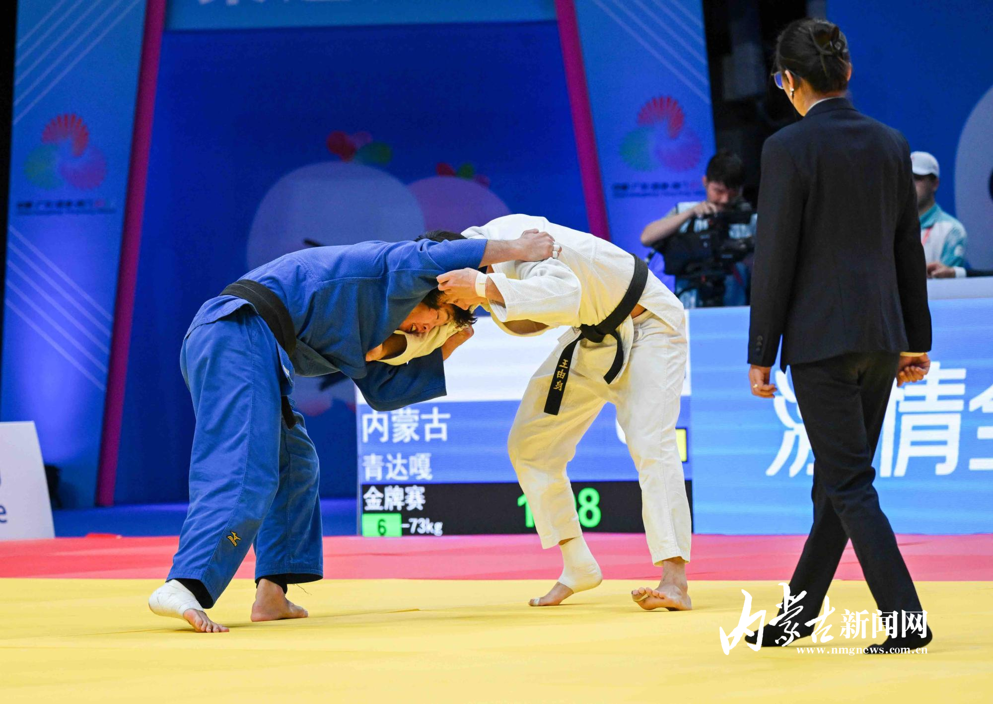 本网讯(草原云·内蒙古新闻网首席记者 牛天甲) 11月11日,第十五届全国运动会柔道比赛进入了第二个比赛日的争夺。在男子73公斤级的金牌赛中,内蒙古选手青达嘎战胜对手,蝉联了该项目的冠军。这枚金牌也是十五运会开幕后内蒙古代表团夺得的首枚金牌。