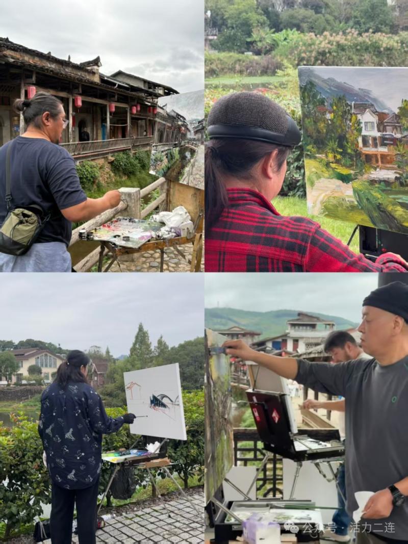 二连浩特的国门、伊林驿站博物馆、中蒙经济合作区,呼和浩特的内蒙古博物院、城市规划展览馆、大盛魁博物馆、莫尼山非遗小镇,福州的三坊七巷、烟台山、梁厝、上下杭、永泰嵩口古镇、春光村,武夷的山水佳境及浦城美术馆、范迪安美术馆给美术家们留下难忘深刻的印象。画家们以笔为媒,捕捉青砖黛瓦间的侯官文化与茉莉花茶的清雅芬芳,勾画茶源圣地的自然肌理与明清商贸遗迹的历史沉淀,在艺术创新创作的共同课题中交流碰撞,共同描绘中蒙文化交融崭新画卷。