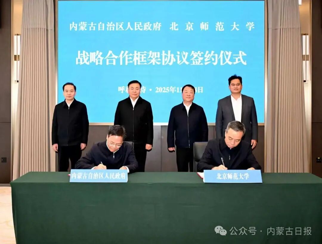 本网讯(草原云·内蒙古新闻网记者 章奎)11月18日,自治区党委副书记、自治区人民政府主席包钢会见北京师范大学党委书记程建平一行,并共同见证自治区人民政府与北京师范大学签署战略合作框架协议。