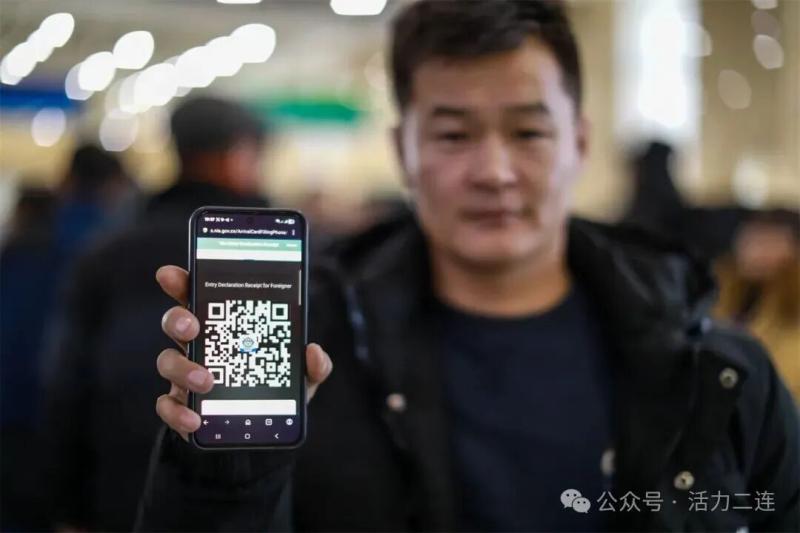 2025年11月20日,一名蒙古国旅客展示网上填报后的外国人入境申报收据