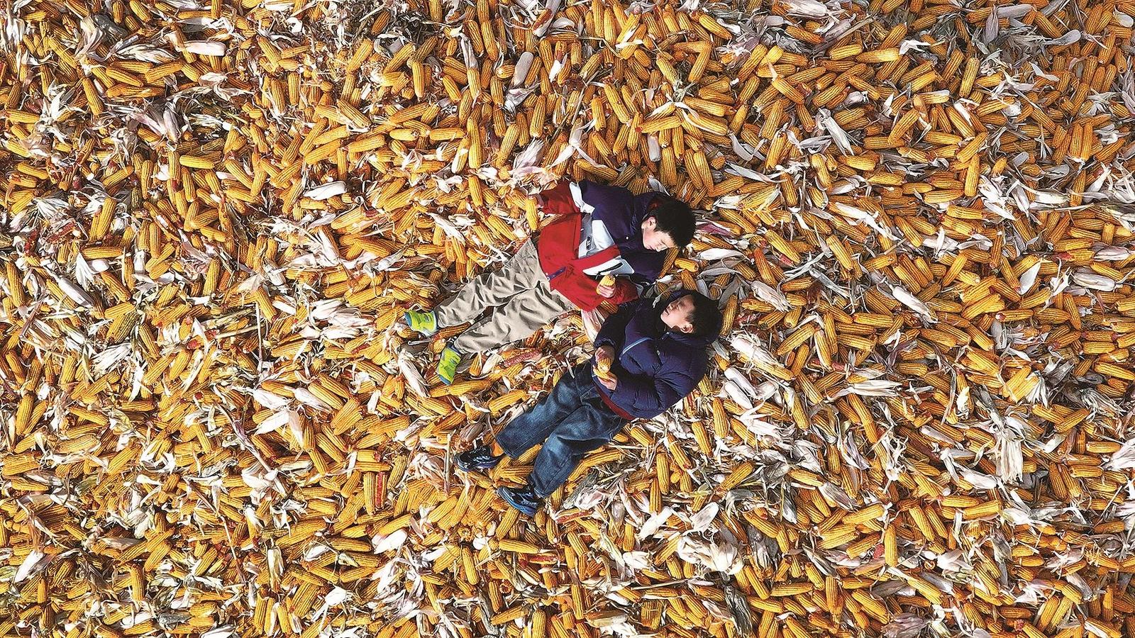 冬日时节,一片金黄的玉米堆化作孩子们的天然游乐场,将童真烂漫的气息渲染得淋漓尽致。这如阳光碎金般的玉米堆,既承载着丰收的厚重,更成为孩子们肆意撒欢的梦幻秘境。