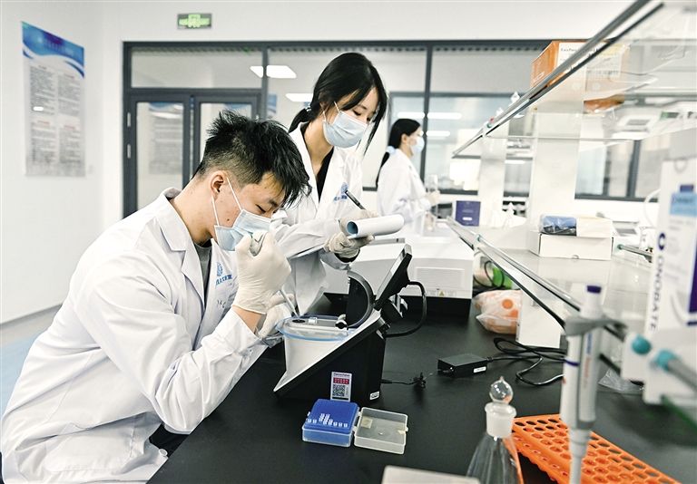 11月26日,在内蒙古大学草原家畜种质创新与繁育基地,生命科学学院的研究生在检测从绵羊血液中提取的DNA浓度。该基地位于呼和浩特市和林格尔新区,目前已组建肉牛、肉羊、绒山羊等10个创新团队,同时与美国、加拿大等多个国家的科研机构,以及崖州湾国家实验室、中科院相关研究所等国内单位建立深度合作关系。草原云·内蒙古新闻网记者 王磊 摄