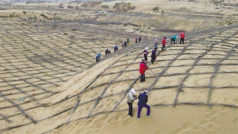 鄂尔多斯市乌审旗境内的乌毛素沙地,被密密麻麻的沙障牢牢锁住。