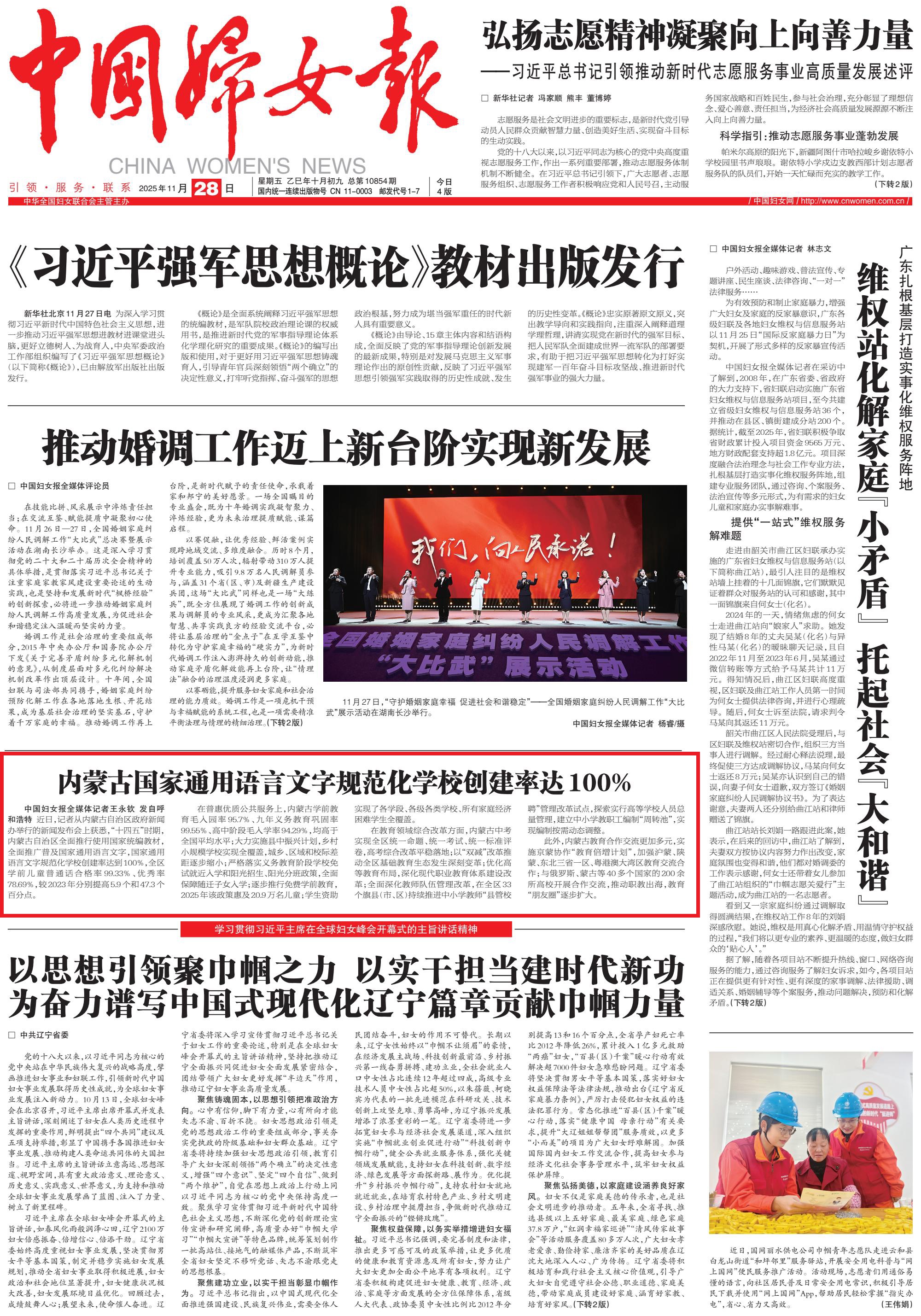 2025年11月28日,《中国妇女报》第1版刊发题为《内蒙古国家通用语言文字规范化学校创建率达100%》的文章,报道了记者从内蒙古自治区政府新闻办举行的新闻发布会上获悉,“十四五”时期,内蒙古自治区全面推行使用国家统编教材,全面推广普及国家通用语言文字,国家通用语言文字规范化学校创建率达到100%,全区学前儿童普通话合格率99.33%、优秀率78.69%,较2023年分别提高5.9个和47.3个百分点。