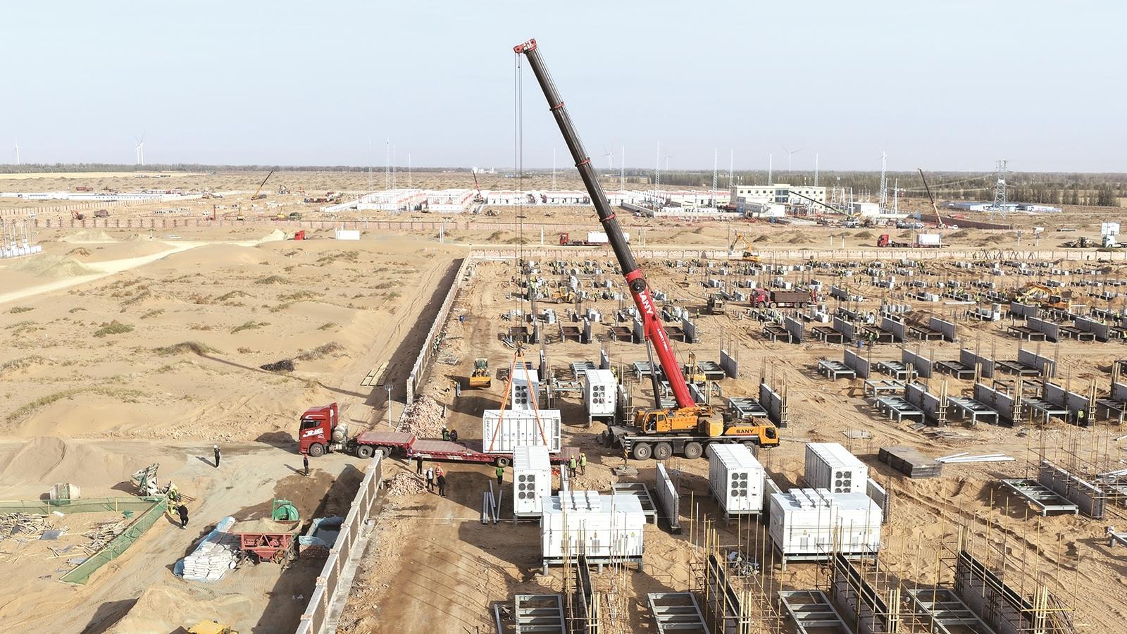 磴口县2025年专项行动电源侧独立储能项目子项目1位于沙金套海苏木温都尔毛道嘎查,属于沙金套海苏木储能集中建设项目区。沙金套海苏木储能集中建设项目区是巴彦淖尔市首个集中规划的储能建设区,总占地2300亩,可容纳2000万千瓦时储能项目。项目区内2024年建成的60.5万千瓦/141万千瓦时电源侧独立储能项目已转入市场化运行。2025年专项行动电源侧独立储能项目子项目1占地187亩,总投资16.5亿元,规模为50万千瓦/200万千瓦时,于今年9月中旬开工建设,目前桩基施工、主变基础、接地变基础、一二次舱基础、220千伏构架基础等主要建设内容已全部完工,进入电池舱、升压一体舱主体设备安装阶段。