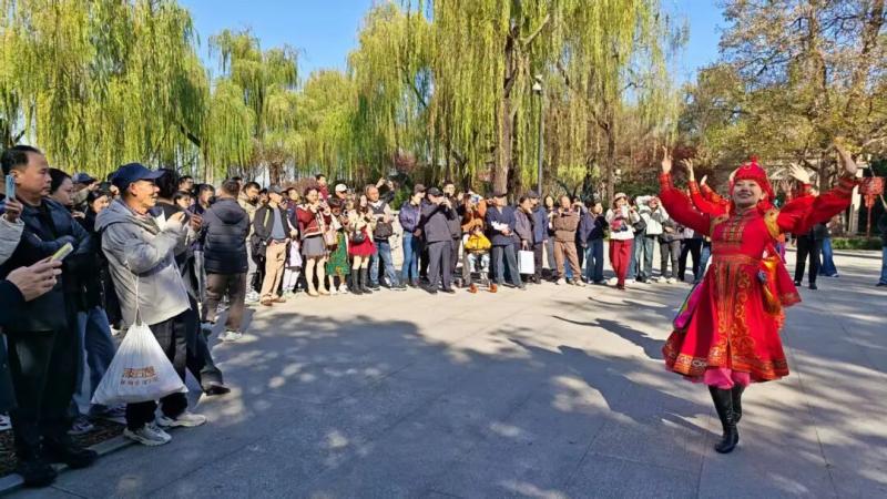 在杭州站推广活动中,推介团走进西湖景区与吴山广场,以沉浸式路演为载体,将雄浑壮阔的大漠风情融入温婉秀美的江南水乡。阿拉善盟乌兰牧骑演员们在西子湖畔奏响悠扬马头琴,演绎苍劲呼麦,原汁原味的民族表演吸引大批市民、游客驻足观赏、拍照。现场观众踊跃参与互动交流,与演员们合影留念,气氛温馨热烈。