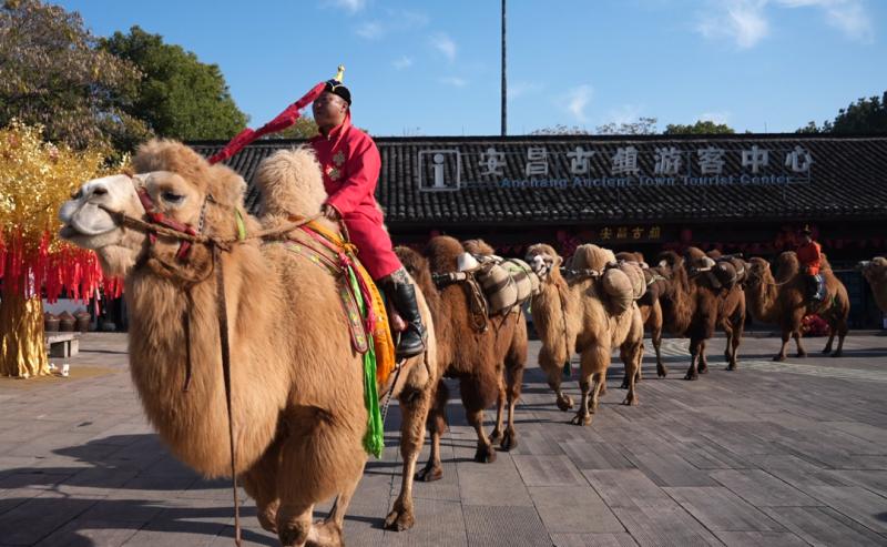 在特色商品展销区里,驼奶制品、驼绒制品、肉苁蓉系列产品及阿拉善玉石饰品等地方特产集中亮相,凭借优良品质吸引众多市民、游客咨询选购。作为活动一大亮点,“歌游内蒙古 神驼万里行”骆驼巡游吸引了大批群众围观,憨态可掬的骆驼与古色古香的江南景致相映成趣,成为展现阿拉善魅力与活力的“流动名片”。