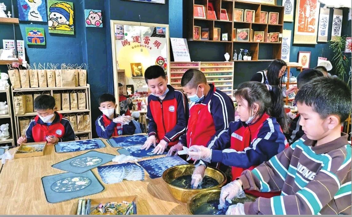 当日,少先队员们来到锡林浩特市造作手工坊,开启非遗扎染体验之旅。手工坊老师详细讲解了扎染的历史脉络,演示了“以绳结之,而后染色”的传统技法。少先队员们亲手设计图案、捆绑布料、浸水染色,在动手实践中感受传统技艺的独特魅力。当色彩斑斓、图案各异的扎染作品完成时,孩子们脸上满是自豪,更加深了对中华优秀传统文化的认知,坚定了文化自信。
