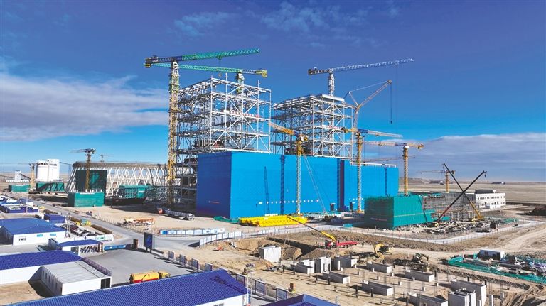 12月1日,在锡林郭勒盟苏尼特左旗中煤芒来煤电一体化项目施工现场,工人们冒着严寒赶工期。该项目一期建设2×66万千瓦高效超超临界先进机组,总投资54亿元。目前,工程总体施工进度已完成69%,各项建设工作全速推进,全力冲刺全年目标任务,力促项目早建成、早投产、早见效。草原云·内蒙古新闻网记者 巴依斯古楞 摄