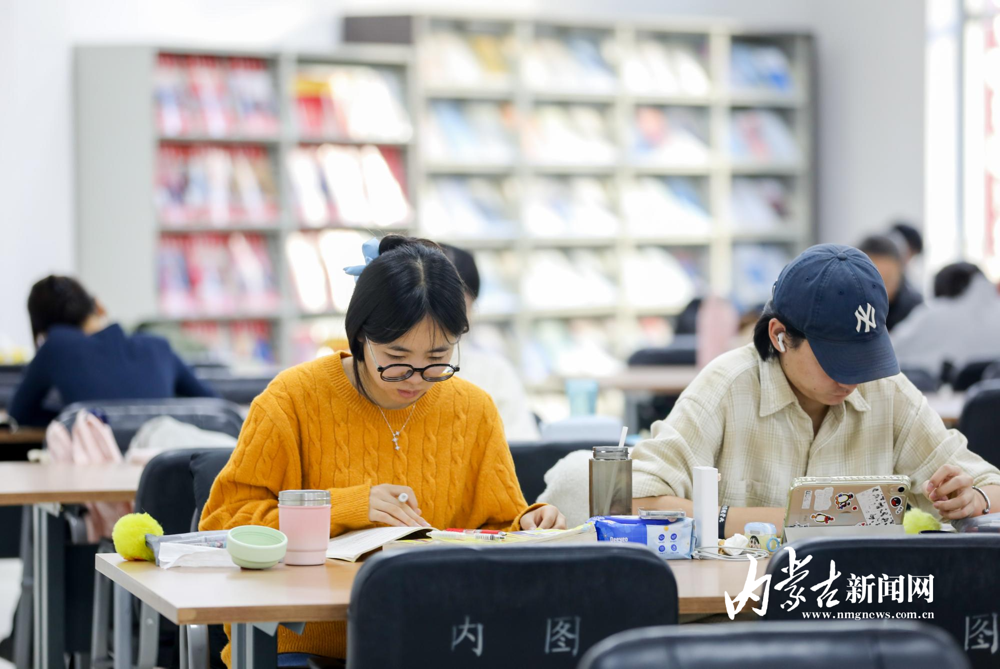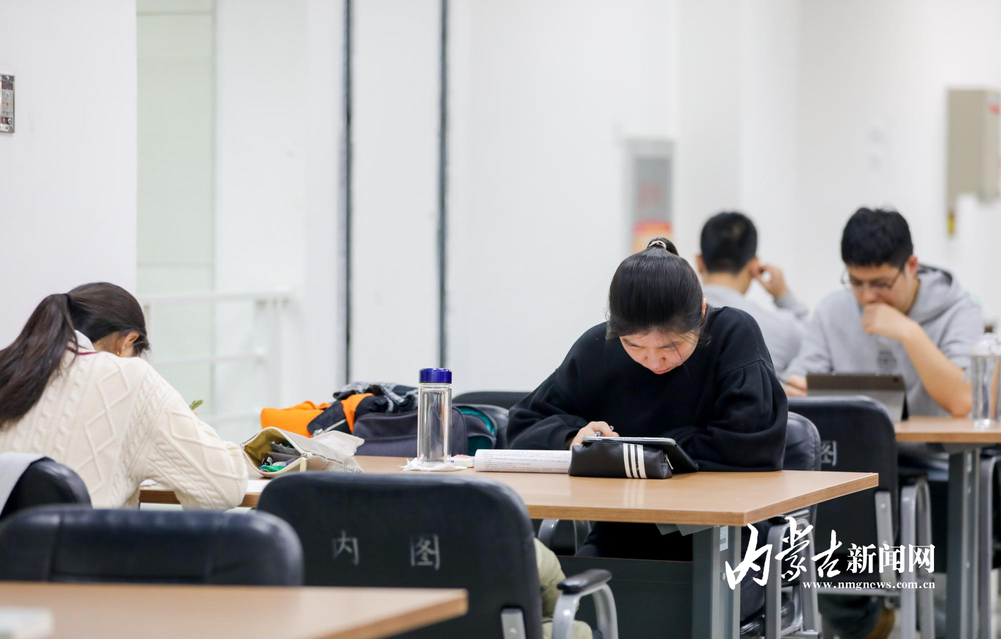 12月9日,在内蒙古图书馆内,考生们紧张学习,全力备战考研。2026年全国硕士研究生招生考试初试考试将于12月20~21日举行。随着考研临近,考生们做最后的冲刺。摄影/草原云·内蒙古新闻网首席记者 牛天甲