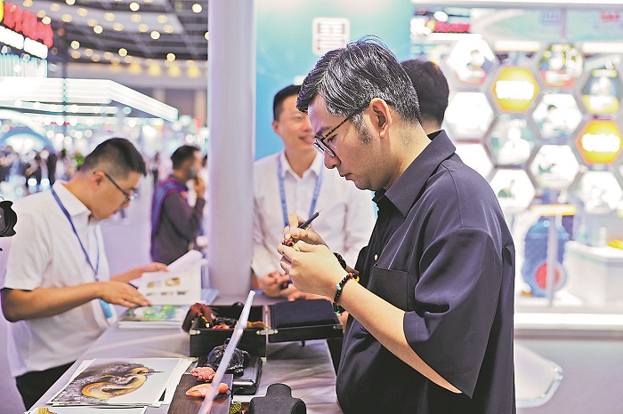 第三届大国工匠创新交流大会暨大国工匠论坛内蒙古展区现场,各地能工巧匠们互学互鉴、深度交流。