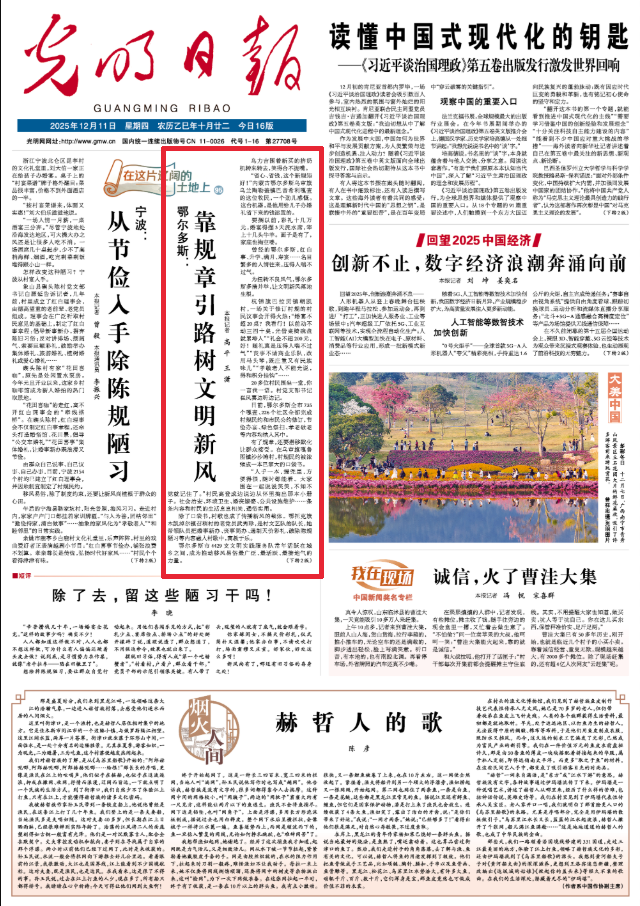 2025年12月11日《光明日报》第1版刊发了《鄂尔多斯:靠规章引路树文明新风》的文章,报道了为扭转不良风气,鄂尔多斯多措并举,让文明新风落地生根。目前,鄂尔多斯全市735个嘎查、226个社区全部完成村规民约和市民公约修订,节俭办宴、绿色祭扫、孝老敬老等内容均纳入其中。