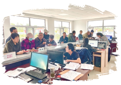 乌兰察布市集宁区白海子镇麻盖村党群服务中心内,工作人员正在为村民办理医疗保险等业务。 受访者供图