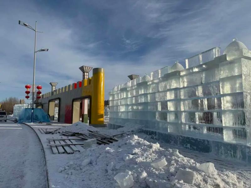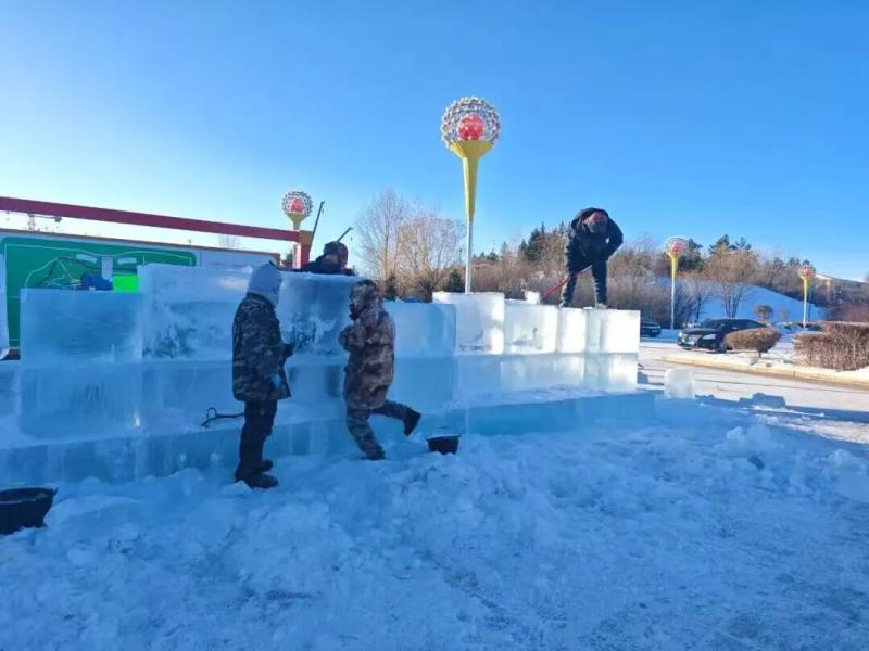 近日,位于鄂温克族自治旗中心城区市民公园内的冰雪乐园建设工作正紧锣密鼓地进行中。80余名施工人员不畏严寒、各司其职,切割冰块、雕琢雪雕、搭建设施,每一道工序都有条不紊,原本沉寂的雪地正逐渐蜕变成充满趣味与梦幻的冰雪天地。
