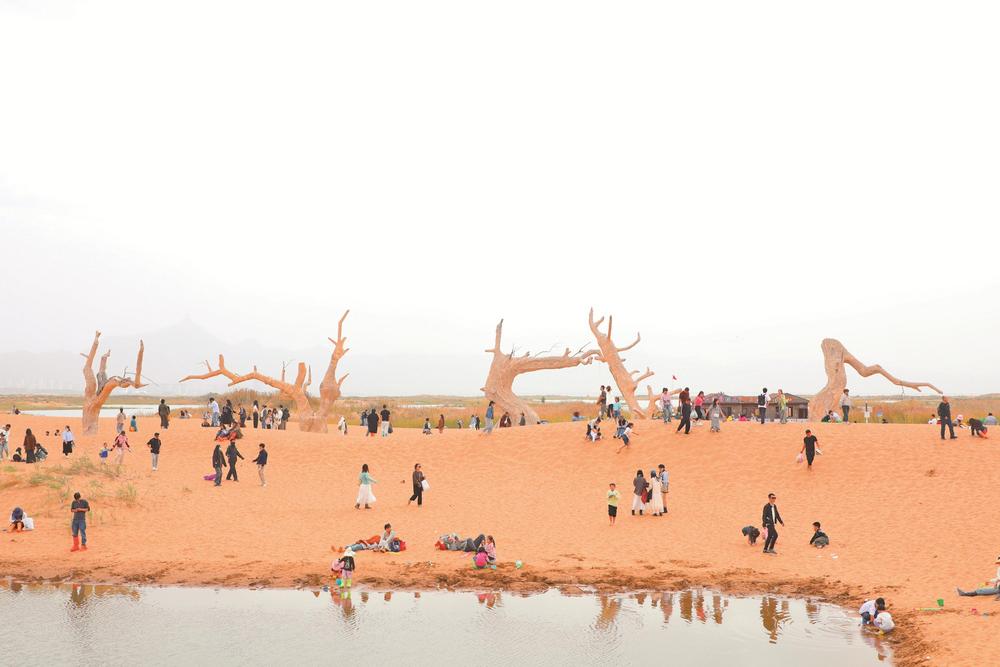 游客纷纷打卡电影《乌海》中的“枯树”取景地。(张靖爽 摄)