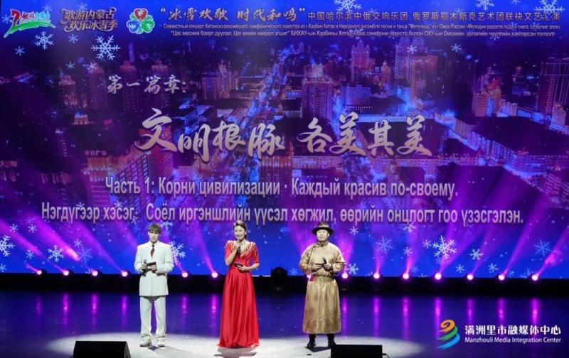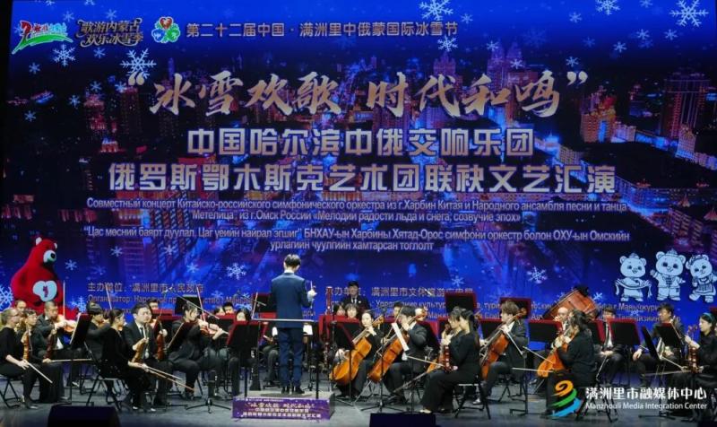 12月19日晚,满洲里市乌兰牧骑剧场内乐声悠扬、舞姿翩跹,“冰雪欢歌 时代和鸣”中国哈尔滨中俄交响乐团、俄罗斯鄂木斯克艺术团联袂文艺汇演在此精彩上演。作为第二十二届中国·满洲里中俄蒙国际冰雪节的重要文化活动,本次演出由满洲里市人民政府主办、满洲里市文体旅游广电局承办,为现场观众呈现了一场跨越国界的艺术交流盛宴。