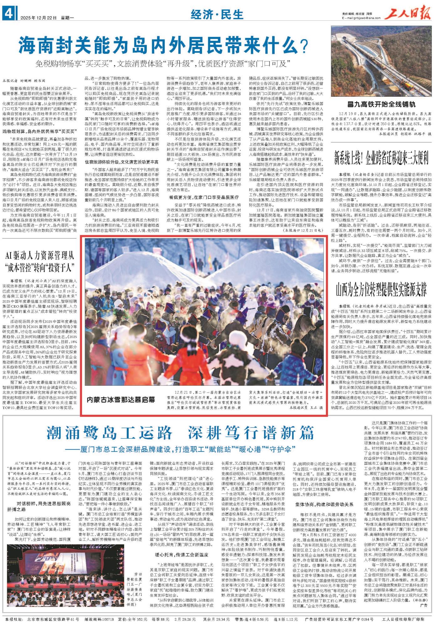 2025年12月22日,《工人日报》第4版刊发题为《内蒙古冰雪那达慕启幕》的文章,报道了第二十一届内蒙古自治区冰雪那达慕在呼伦贝尔开幕,本届那达慕打造“全域联动+冰雪+文化+旅游”特色冰雪盛宴,吸引国内外游客前来感受大雪原的独特魅力。