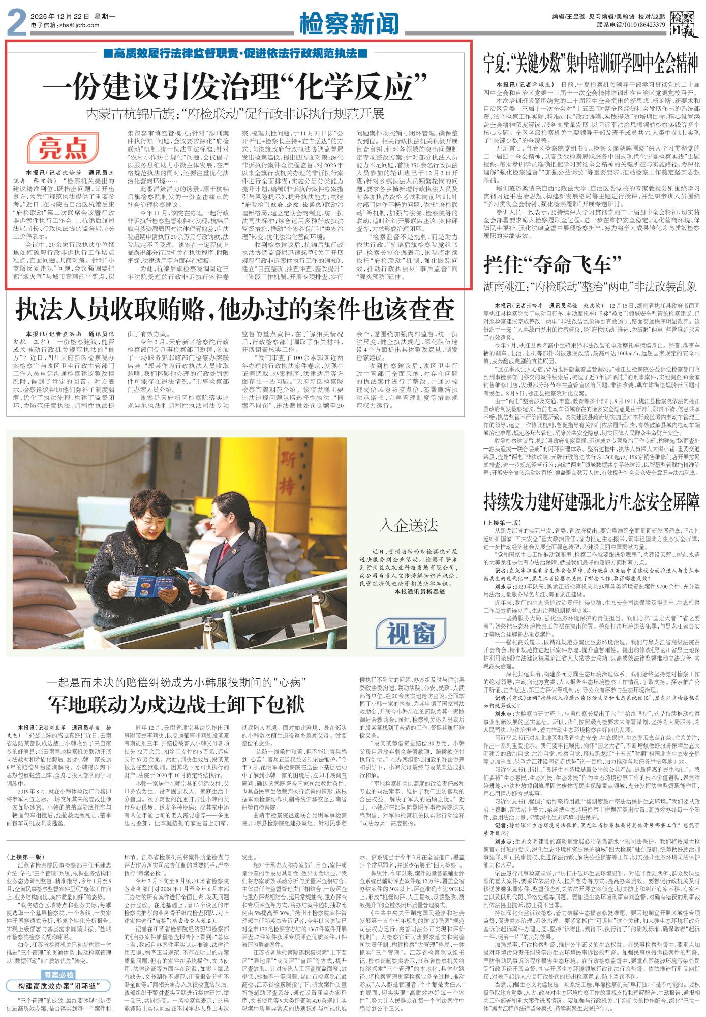 2025年12月22日,《检察日报》第2版刊发题为《一份建议引发治理“化学反应”内蒙古杭锦后旗:“府检联动”促行政非诉执行规范开展》的文章,报道了内蒙古杭锦后旗依托“府检联动”机制,强化跟踪问效,推动行政执法从“事后监督”向“源头预防”延伸。