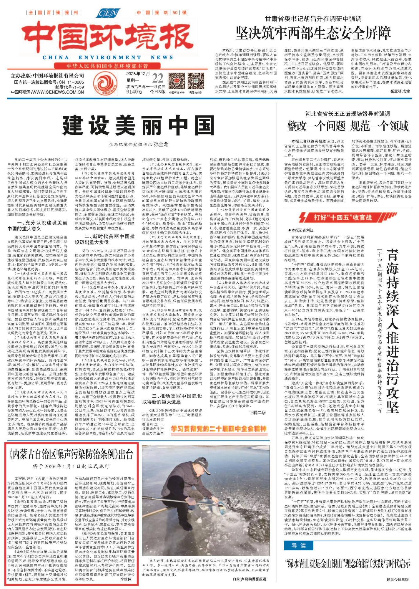 2025年12月22日《中国环境报》第1版刊发了《内蒙古自治区噪声污染防治条例》出台的文章,报道了《内蒙古自治区噪声污染防治条例》(以下简称《条例》)经内蒙古自治区第十四届人民代表大会常务委员会第十八次会议通过,将于2026年1月1日起正式施行。