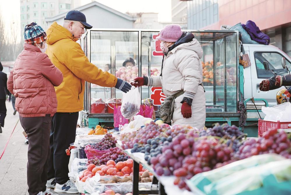 市民在早市上选购商品。