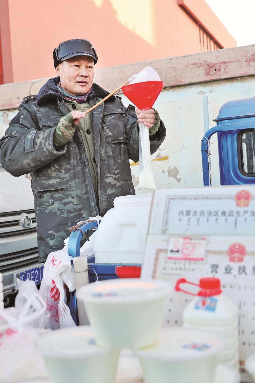 早市上的鲜牛奶。