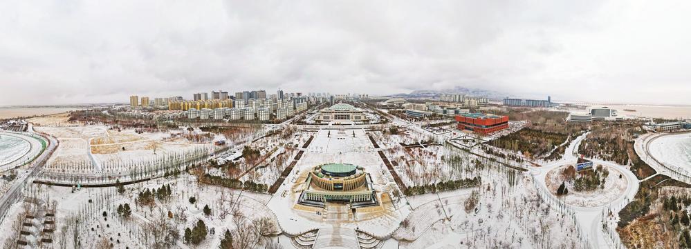 一场小雪过后,滨河新区俨然成为一个银装素裹的世界。