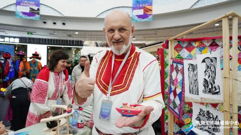 市民呼婧表示:“听说有这个活动,就来看看。活动特别热闹。我看了很多非遗作品,有俄罗斯的布艺、蒙古的服饰都很有特色。这次活动让我感受到了中俄蒙三国文化的交融,希望中俄蒙三国的友谊天长地久。”