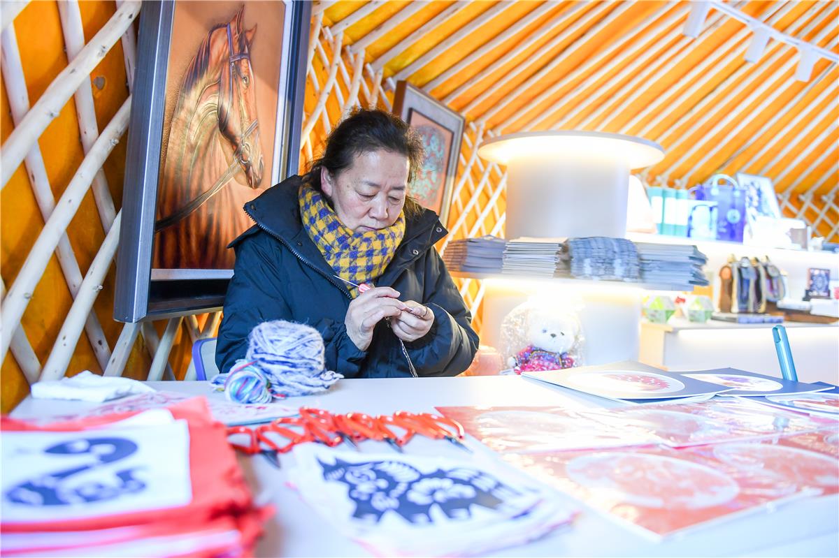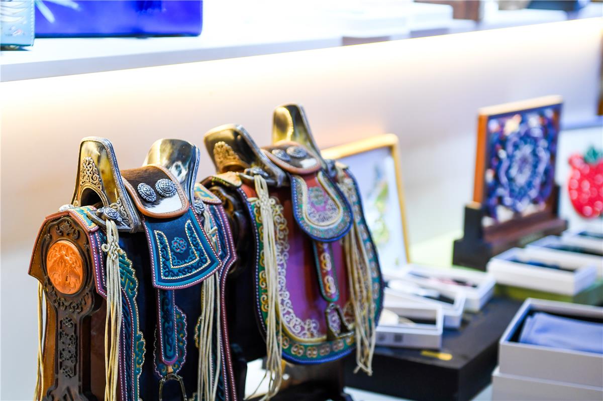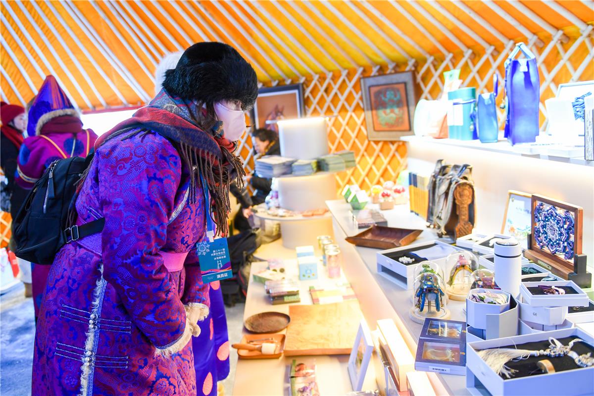 呼和浩特市文化旅游广电局产业科科长梁栋国介绍,呼和浩特市蒙古包分为四大功能区,悠扬的马头琴现场演艺区让传统民乐回荡于蒙古包中;非遗文创展示区集中陈列《草原歌盛世》大型皮雕画、非遗盘扣、蒙古制香等工艺精品;冬季主题海报展示区以视觉艺术呈现塞北风光;文旅咨询服务台则为游客提供贴心导览。