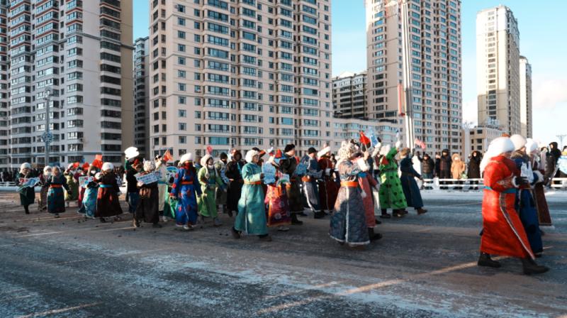 当日下午,随着启动指令铿锵发出,巡游队伍按预设序列踏雪前行,奏响传统与现代的交响。草原畜群方阵中,20匹马踢踏冰霜、6头驯鹿披着蓬松绒毛、8峰骆驼缀着传统驼具,在专人牵引下稳步走来,尽显林区游牧的原始风情;“伊敏河文旅长廊”“歌游内蒙古 冬趣海拉尔”两辆定制主题花车紧随其后,雪弗板打造的冰雪装饰熠熠生辉,流动间串联起地域文旅脉络;身着蒙古族、鄂温克族、鄂伦春族、达斡尔族、俄罗斯族等多民族服饰的民族盛装方阵,衣袂翻飞间尽显民俗风情。
