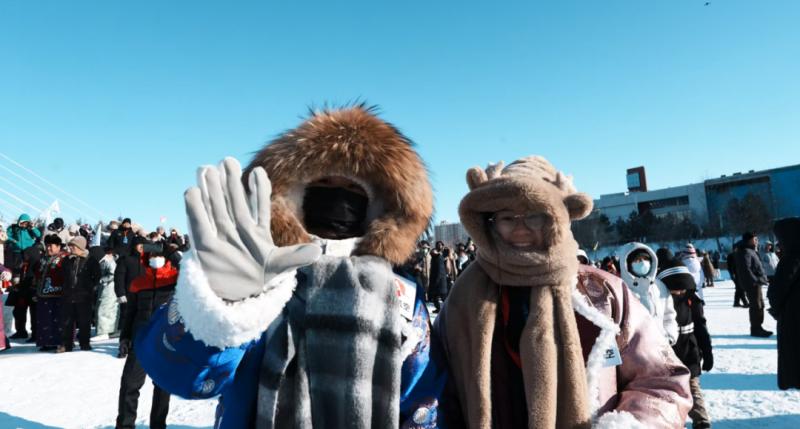 12月21日,“百万青年看祖国·小荆豆子踏雪原”香港青少年游学团走进第二十一届内蒙古自治区冰雪那达慕开幕式现场,与呼伦贝尔市各族人民共同见证这场盛会的启幕。