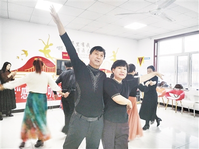 土默特右旗兴隆社区居民表演二人台。