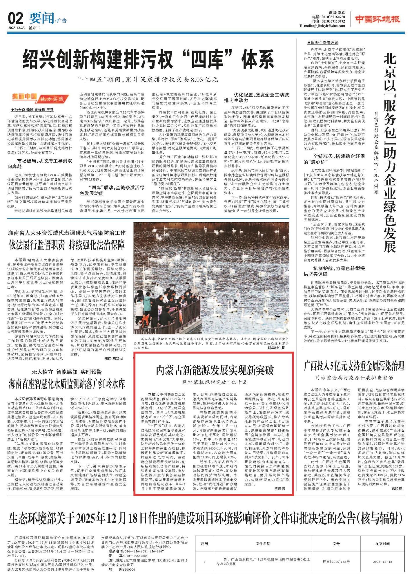 2025年12月23日《中国环境报》第2版刊发了《内蒙古新能源发展实现新突破》的文章,报道了截至2025年11月底,内蒙古自治区新能源装机规模达到1.54亿千瓦,稳居全国首位。其中,风电装机规模达到10033万千瓦,在全国率先突破1亿千瓦。
