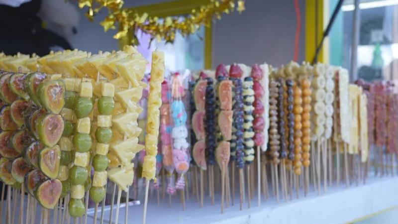 在业态区东面,15 辆彩色小车组成热闹的美食大集,各类特色美食琳琅满目,商家们正有条不紊地忙碌着,精心准备各色美味。