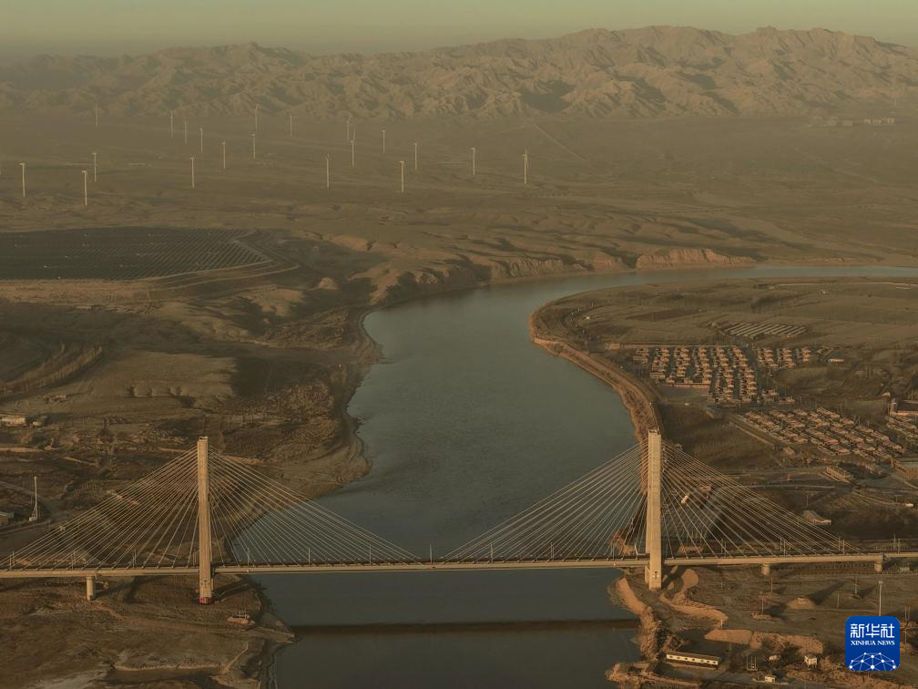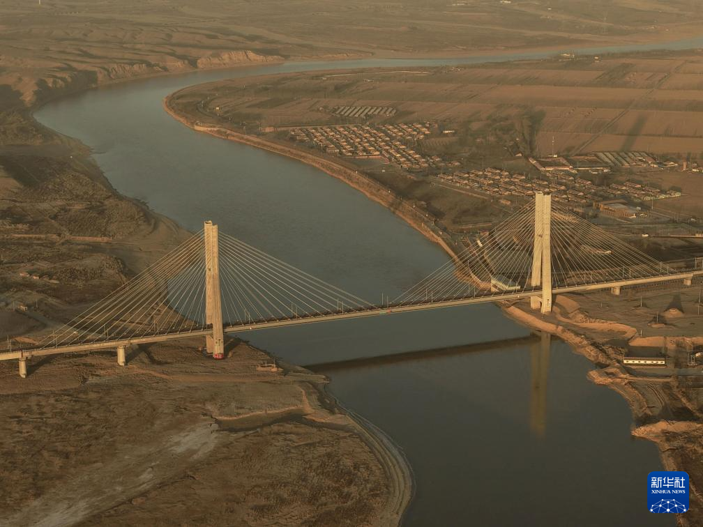 这是12月23日拍摄的包银高铁乌海黄河特大桥(无人机照片)。新华社记者 邢广利 摄