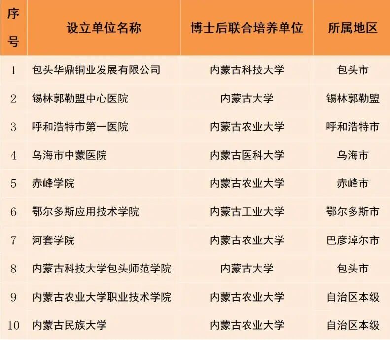 为提升青年高层次人才吸引能力,搭建博士后人才培养载体,近日,自治区人力资源社会保障厅开展了首批博士后创新实践基地建设工作,遴选内蒙古民族大学、呼和浩特市第一医院等10家单位设立自治区博士后创新实践基地。