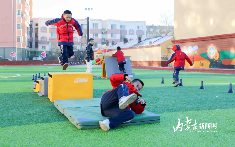 “注意发力节奏,提升速度!”12月24日上午,呼和浩特市回民区县府街小学的操场上充满欢声笑语,一堂妙趣横生的跑酷课正在进行。只见孩子们身手敏捷,时而躬身完成侧滚翻,时而蓄力起跳越过障碍栏,时而舒展身体完成金刚跳,每一个动作都充满活力。